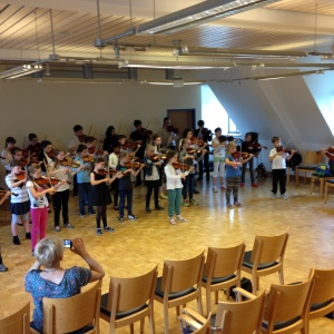 Am Samstag gab es ein Abendkonzert mit Musik aus verschiedenen Ländern und als Appetitanreger Bachs a-Moll-Violinkonzert, wobei unsere ältesten Teilnehmer den Solopart übernahmen und unsere Lehrer und einige wunderbare zusätzliche Musiker das Kammerorchester bildeten. Es folgte Volksmusik mit traditioneller Musik aus ganz Europa und dem Nahen Osten. Nicht zu vergessen ist die Teilnahme unseres wunderbaren Elternorchesters unter der Leitung von Ditte Barth.